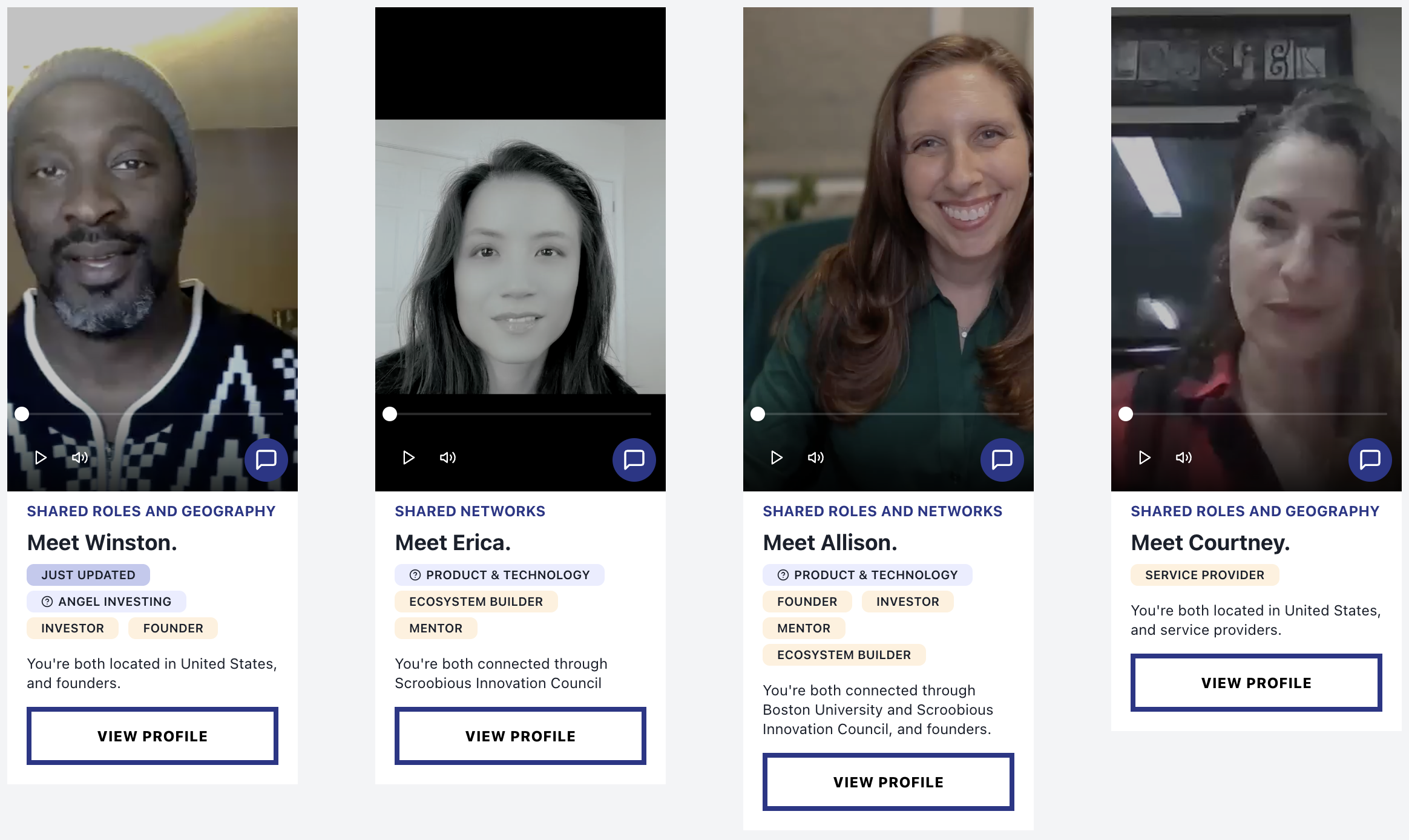 Member profiles with video introductions and direct messaging
